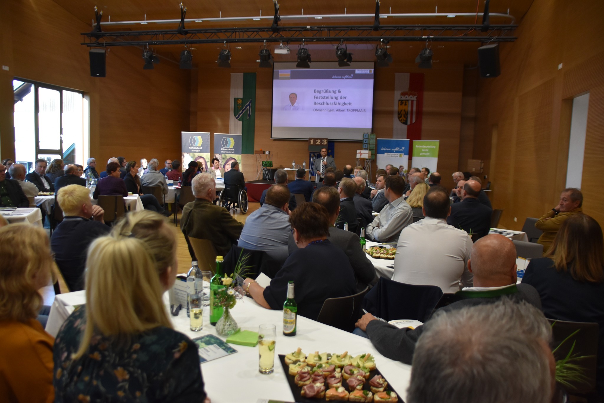 Die zahlreichen Gäste werden von LEADER und den beiden KEM's in der Mehrzweckhalle Burgkirchen empfangen.