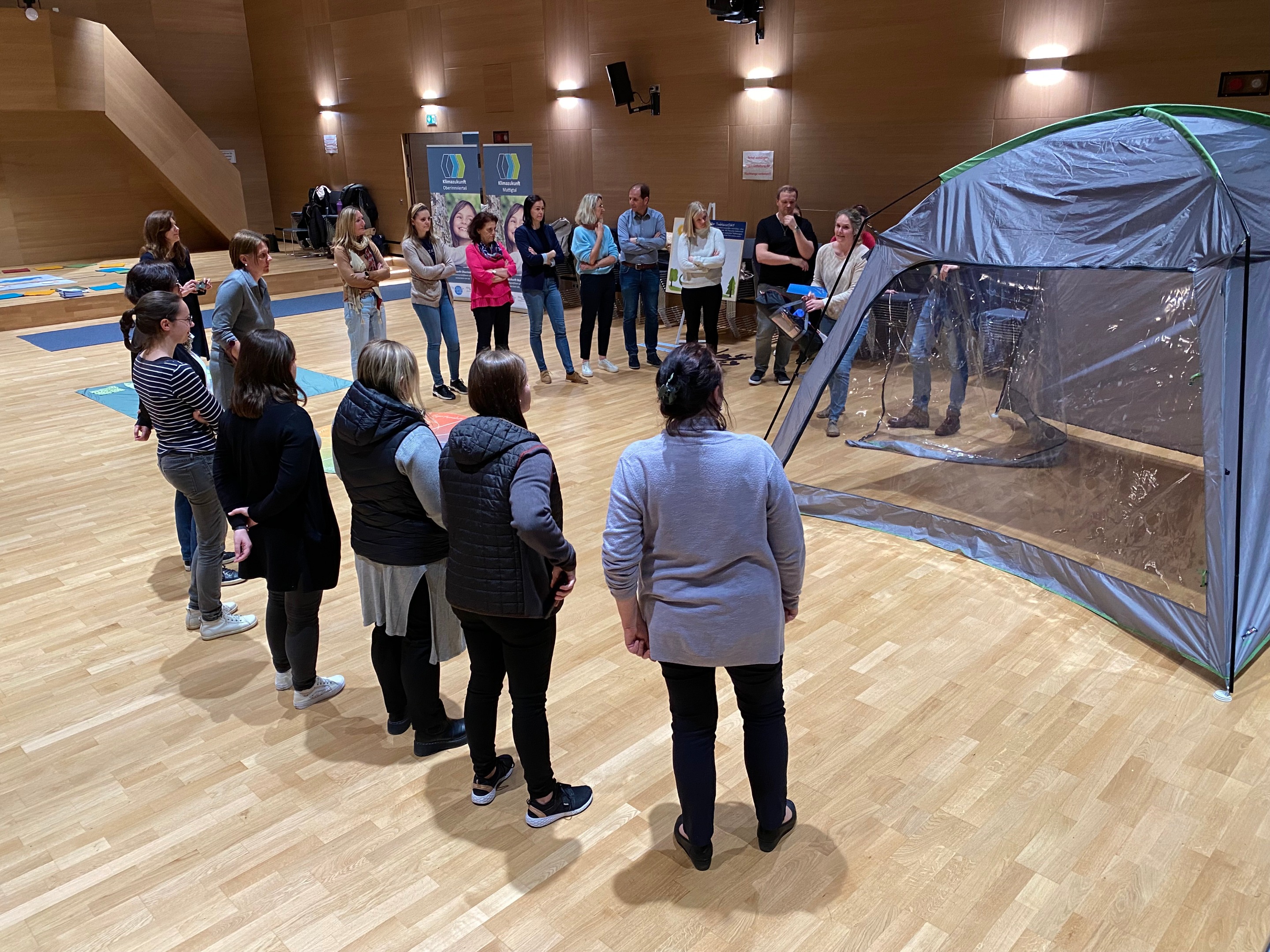 Zahlreiche Pädagog:innen nutzten die Gelegenheit, die Ausstellung kennenzulernen und sich mit Partner:innen wie Klimabündnis Oberösterreich und Acker Österreich zu vernetzen. Die fachliche Einschulung erfolgte durch die KEM-Manager:innen Fabian Caesar Wenger und Angelika Wimmer.