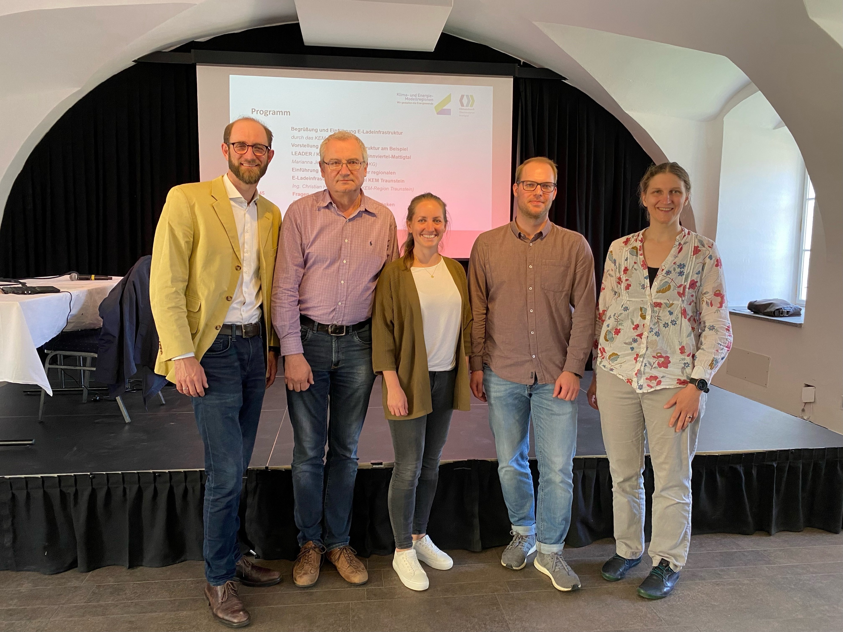 v.l.n.r.: DI Fabian Caesar Wenger (KEM Klimazukunft Mattigtal), Ing. Christian Hummelbrunner (KEM Traunstein), Angelika Wimmer, B.Sc. (KEM Klimazukunft Oberinnviertel), Raphael Glück, M.Sc. (komobile GmbH) und Marianna Jelinek (ella GmbH und CoKG)