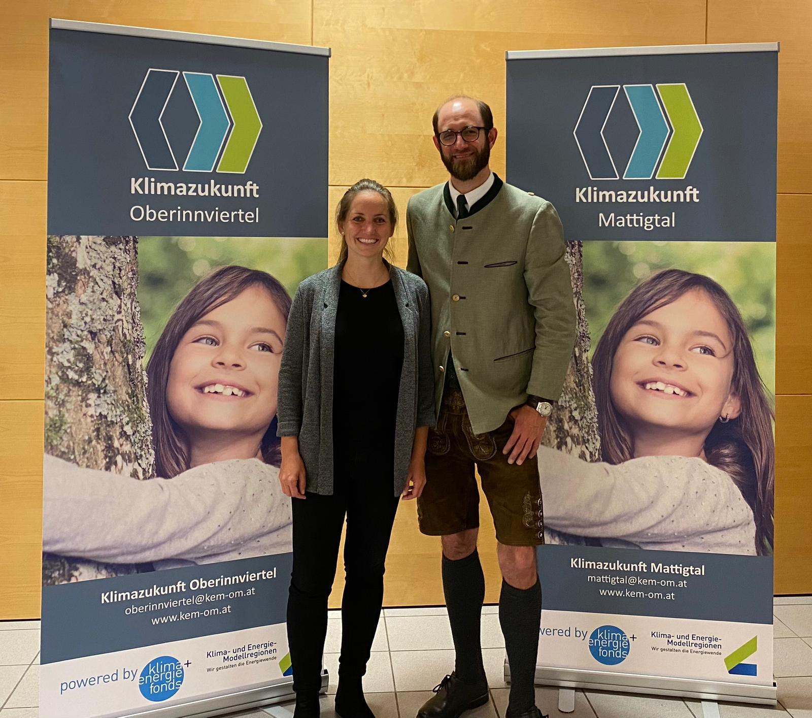 v.l.n.r. Herr DI Fabian Caesar Wenger, M.Sc. (KEM Klimazukunft Mattigtal) und Frau Angelika Wimmer, B.Sc. (KEM Klimazukunft Oberinnviertel)
