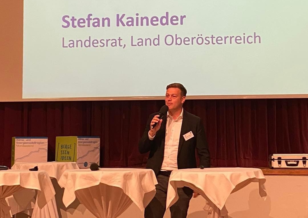 LR Stefan Kaineder begrüßte alle Teilnehmer:innen und führte in das Thema ein. Es folgten spannende Vorträge vom Amt der OÖ Landesregierung, Klimabündnis OÖ und dem Verein der KEM Regionen Österreichs.