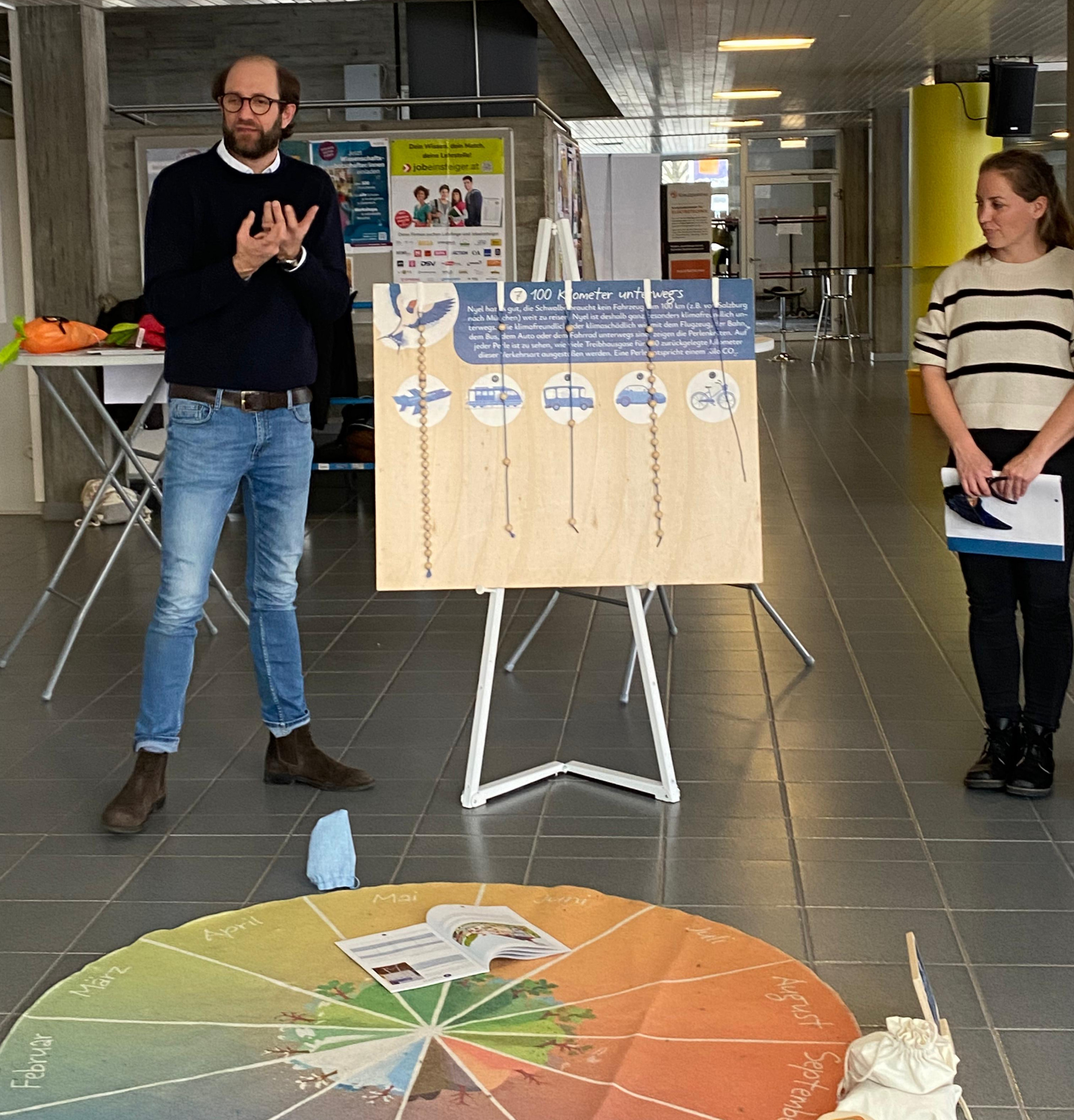 Zahlreiche Pädagog:innen nutzten die Gelegenheit, die Ausstellung kennenzulernen und sich mit Partner:innen wie Klimabündnis Oberösterreich und Acker Österreich zu vernetzen. Die fachliche Einschulung erfolgte durch die KEM-Manager:innen Fabian Caesar Wenger und Angelika Wimmer.