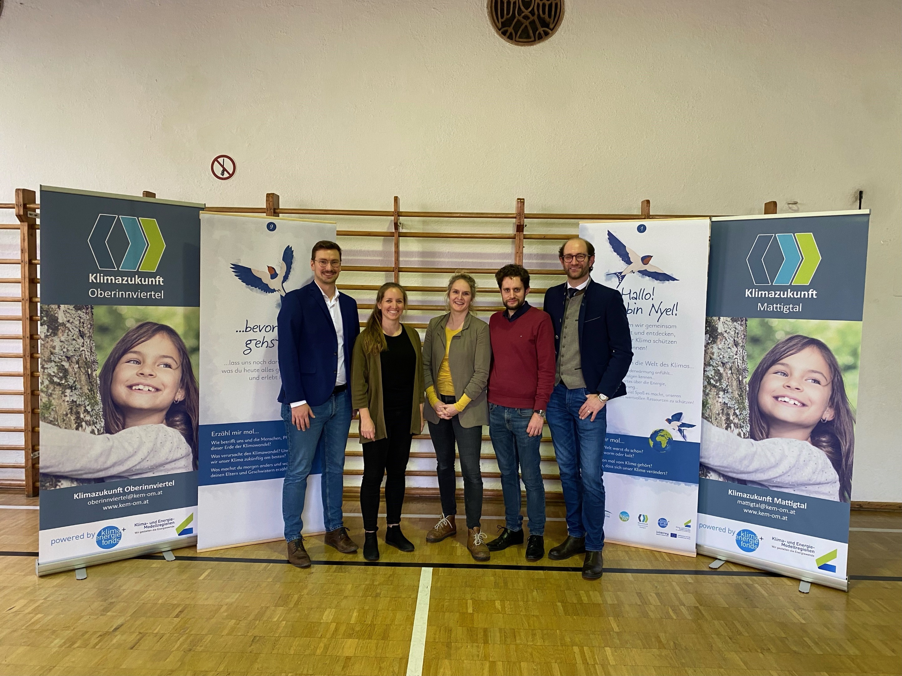 v.l.n.r.: DI Fabian Caesar Wenger (KEM Klimazukunft Mattigtal), Ing. Christian Hummelbrunner (KEM Traunstein), Angelika Wimmer, B.Sc. (KEM Klimazukunft Oberinnviertel), Raphael Glück, M.Sc. (komobile GmbH) und Marianna Jelinek (ella GmbH und CoKG)