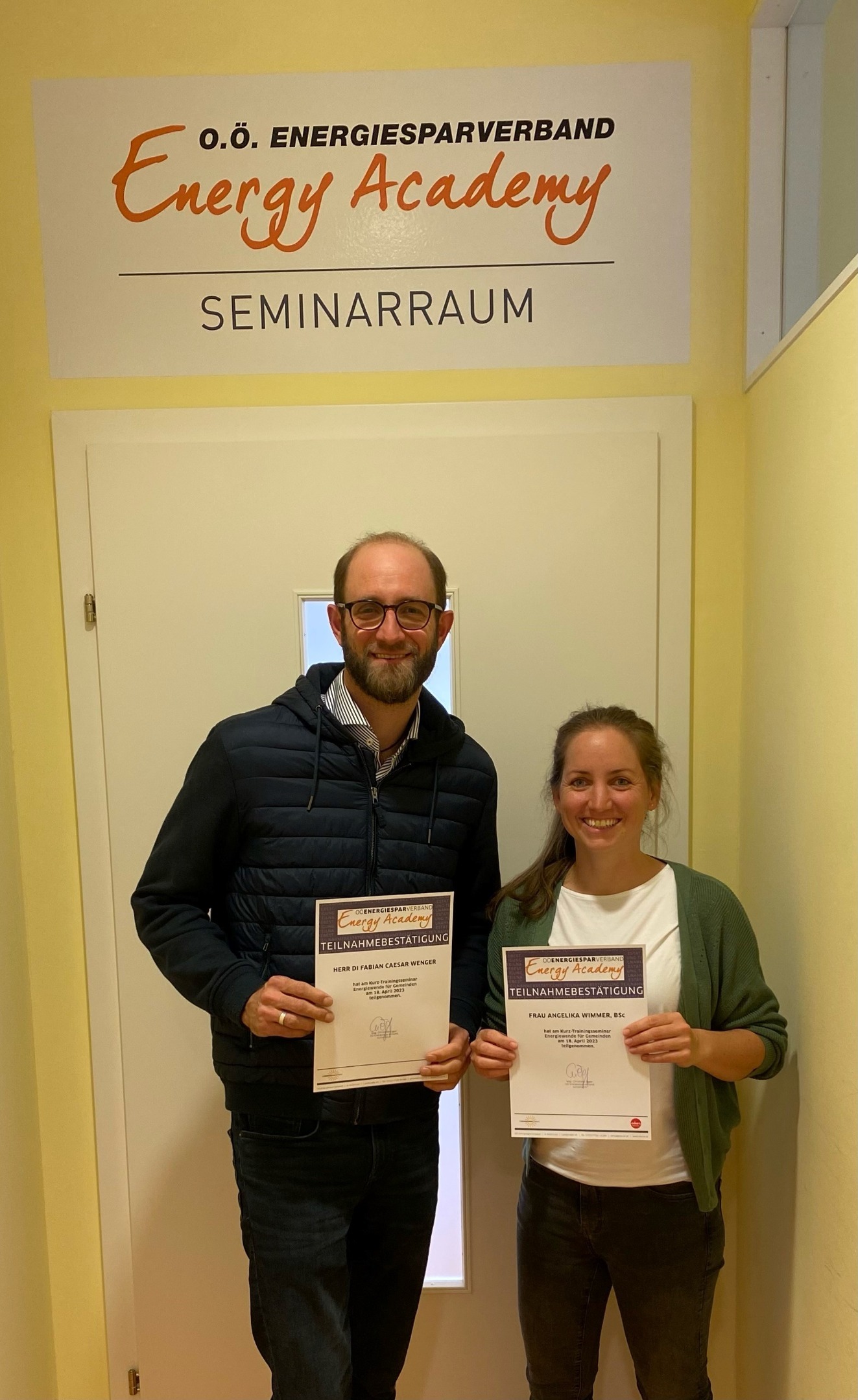 Die Klima- und Energiemodell-Regionen "Klimazukunft Mattigtal" und "Klimazukunft Oberinnviertel", vertreten durch Herrn DI Wenger, M.Sc. und Frau Wimmer, B.Sc., nahmen am Trainingsseminar "Energiewende für Gemeinden" teil und konnten dabei wichtige Erkenntnisse über die Arbeit des OÖ Energiesparverbandes gewinnen. Ein essentieler Bestandteil des Seminars beschäftigte sich damit mittels welcher Strategien und Maßnahmen die Energiewende in die Gemeinden bzw. KEM-Regionen getragen werden kann. Insbesondere wurden die damit verbundenen Bundes- und Landesförderungen erläutert und Wege gezeichnet, um Energieeffizienz-Steigerungen zu erzielen und den Anteil erneuerbarer Energien für öffentliche Gebäude und Anlagen zu erhöhen.
