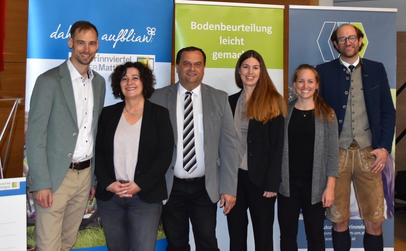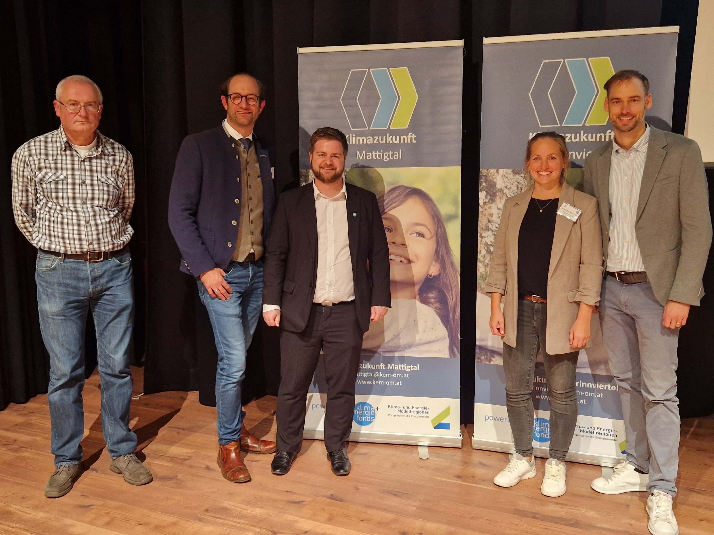 v.l.n.r.: Bgm. David Valentin (Finanzreferent), BR Ferdinand Tiefnig (Obmann), Fabian Caesar Wenger (KEM-Manager "Klimazukunft Mattigtal"), Angelika Wimmer (KEM-Managerin "Klimazukunft Oberinnviertel"), Friedrich Schwarzenhofer (Obmann Stv.), Florian Reitsammer (Geschäftsführer LEADER Oberinnviertel-Mattigtal)
