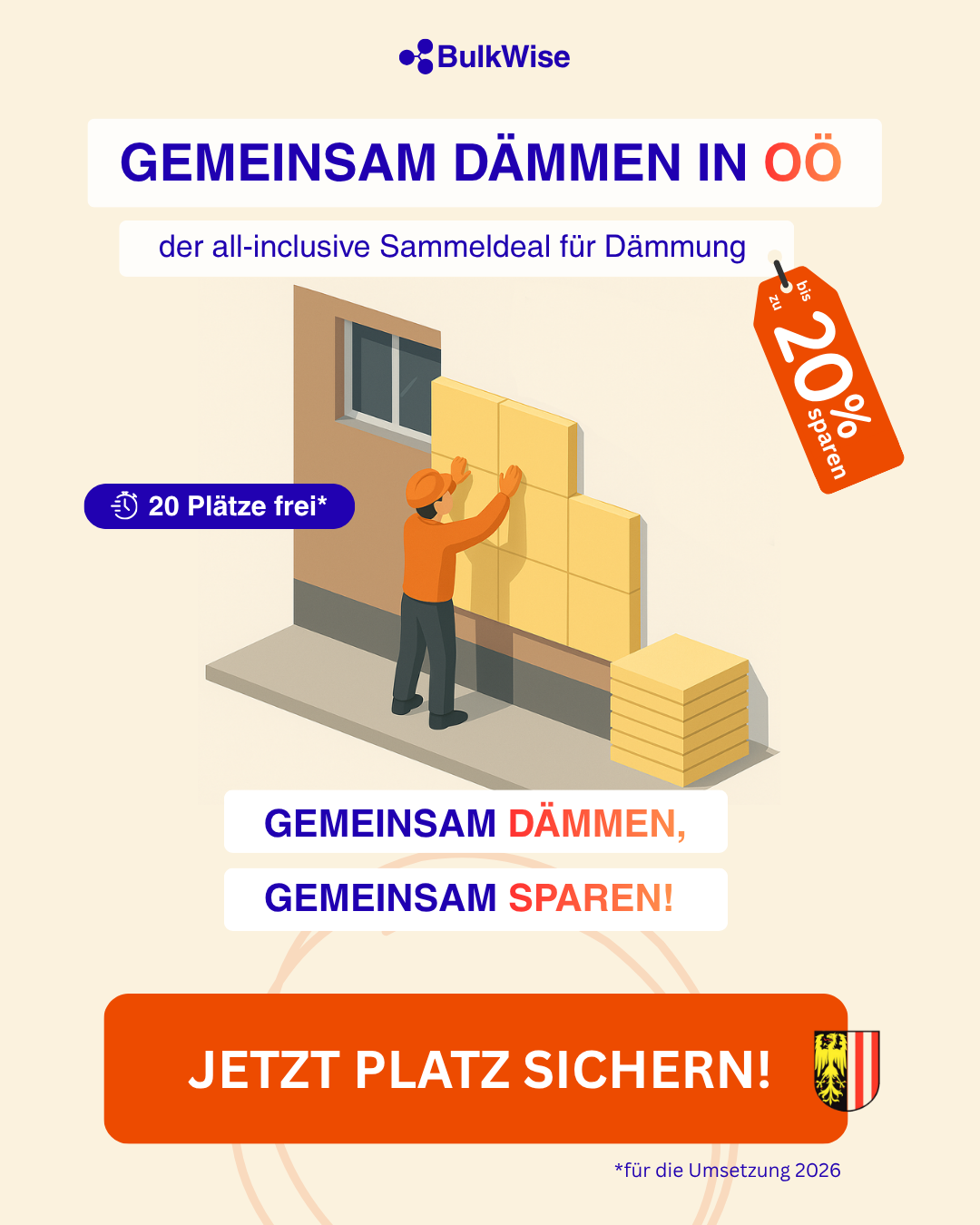 BulkWise bündelt mehrere Anfragen aus einer Region zu einem gemeinschaftlichen Einkauf. So entstehen faire Preise, weniger Aufwand und geprüfte Qualität. Gemeinsam mit regionalen Handwerksbetrieben und Partnern wie den Klima- und Energie-Modellregionen (KEM) können Hausbesitzer ihre Sanierung effizienter umsetzen.