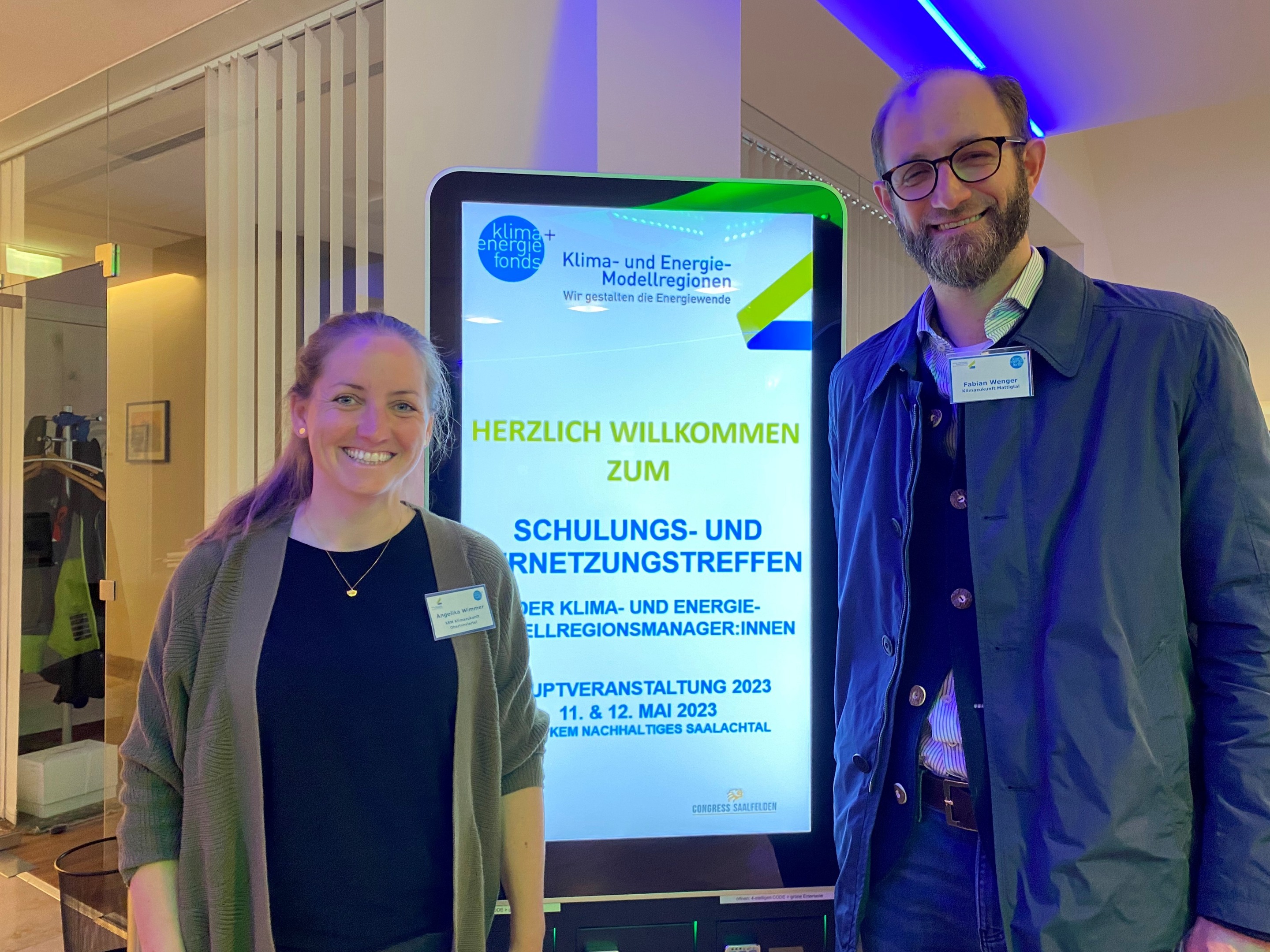 v.l.n.r. Herr DI Fabian Caesar Wenger, M.Sc. (KEM Klimazukunft Mattigtal) und Frau Angelika Wimmer, B.Sc. (KEM Klimazukunft Oberinnviertel)